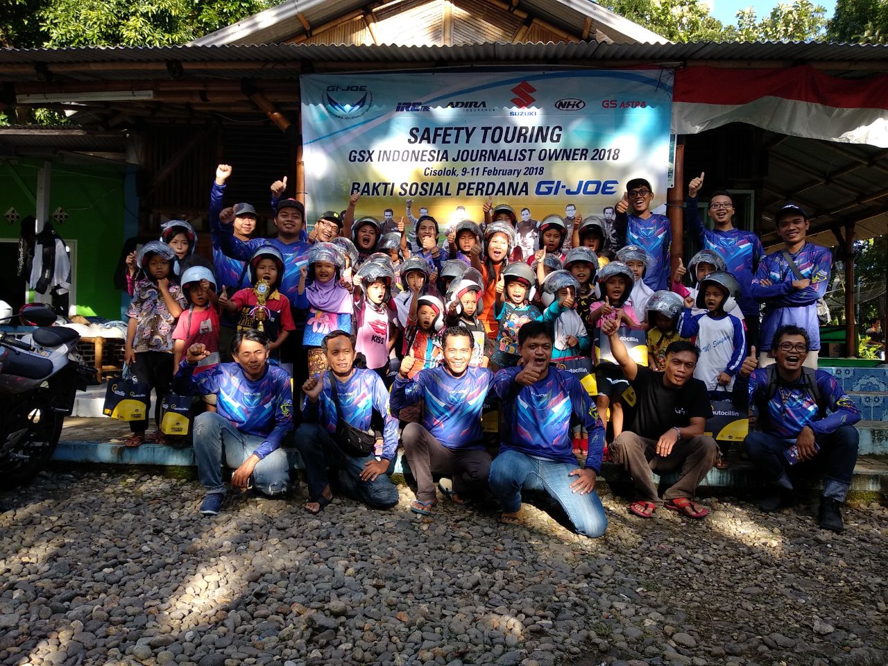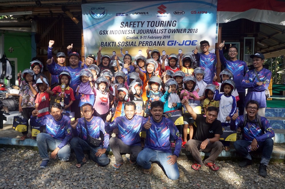Dengan semangat insan media yang menjunjung tinggi kerberagaman serta kepedulian sosial, touring perdana kali ini GI-JOE memilih destinasi Cisolok, Sukabumi, Jawa Barat. Kegiatan ini tidak hanya sekedar kopi darat antar member dan komunitas, akan tetapi GI-JOE juga menggelar kegiatan sosial yang melibatkan dan memberikan banyak manfaat bagi masyarakat setempat.
