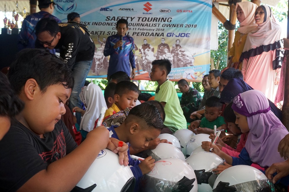 “Acara ini kita adakan sebagai rangkaian dalam memperingati Hari Pers Nasional pada 9 Februari. Bentuknya adalah dengan mengadakan touring yang dikemas dengan kegiatan bakti sosial. Kami mengajak anak-anak untuk berperan aktif melalui lomba mewarnai helm yang nantinya bisa mereka gunakan saat berkendara bersama keluarga. Karena kami yakin bahwa untuk menciptakan generasi yang sadar tentang keamanan berkendara harus dimulai sejak usia dini. Acara ini sekaligus menjadi gathering bersama komunitas Suzuki lainnya dan juga dengan Forum Wartawan Otomotif (Forwot),” ujar Jules Rimet Langitan selaku Ketua Umum GI-JOE.