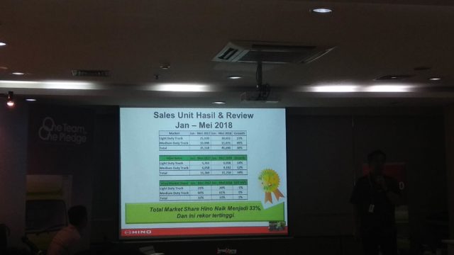 Hino sebagai pemimpin pasar medium duty truck selama 18 tahun terakhir ini, juga merasakan manisnya kenaikan pasar ini. Total penjualan Hino untuk semua kategori sebanyak 15.250 unit, hasil ini tumbuh 33% jika dibanding periode Januari – Mei 2017.