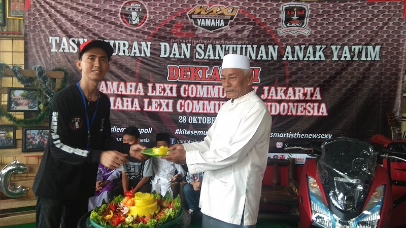 Jakarta – Komunitas motor yang satu ini selalu menjunjung tinggi nilai persaudaraan antar member dan antar komunitas lainnya. Yamaha Lexi Community Jakarta (YLCJ) adalah nama komunitas motor yang satu ini. Baru- baru ini mereka mengadakan acara Deklarasi dan Santunan Anak Yatim bersama Dua Lexi.
