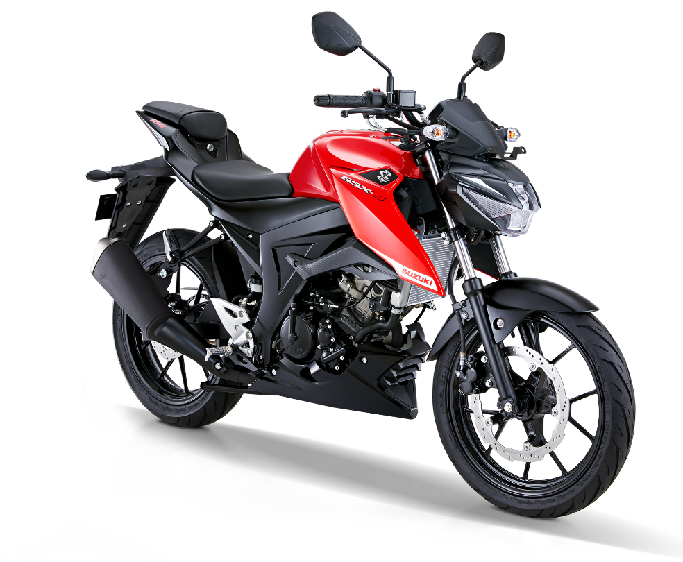 Untuk GSX-S150 varian Shuttered Key System kini hadir dengan pilihan warna Fibroin Gray – Rouge Red Casting Wheels dan Stronger Red.